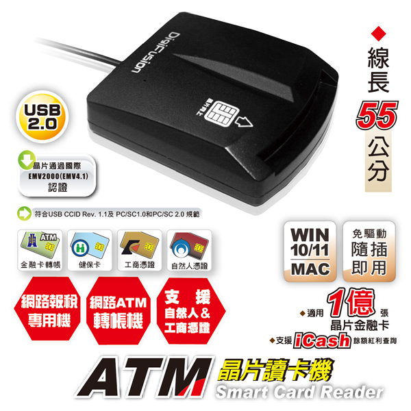 ■ 免驅動:符合USB CCID Rev. 1.1及PC/SC1.0和PC/SC 2.0規範,隨插即用