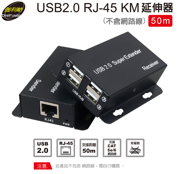 伽利略 USB2.0 RJ-45 KM 延伸器 50米