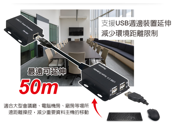 利用網路線,可以使USB2.0設備延伸約50公尺距離