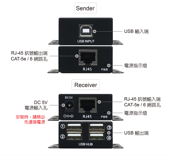 支援 CAT-5e / 6 以上標準電纜 ≦50公尺