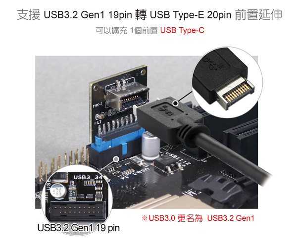 ¡½ ¤ä´©¥D¾÷ªO¤º±µ¦¡USB3.2 Gen1 19 pinÂà´«¦¨¤º±µ¦¡USB Type-E 20 pinºÝ¤f