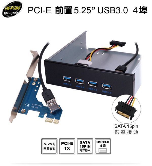 伽利略 PCI-E 前置 5.25”USB3.0 4埠
