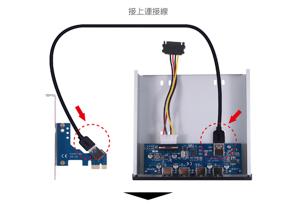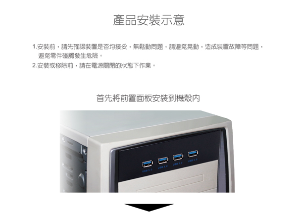 支援PC前置面板(5.25吋)擴充 USB3.0 4埠HUB (相容 USB3.1/2.0/1.1)