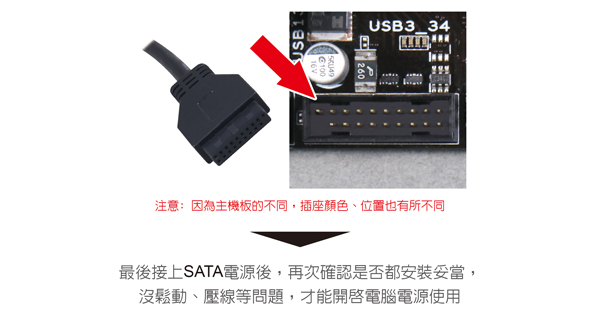 內建 小4pin轉SATA 供電插座 (請務必接上電源)