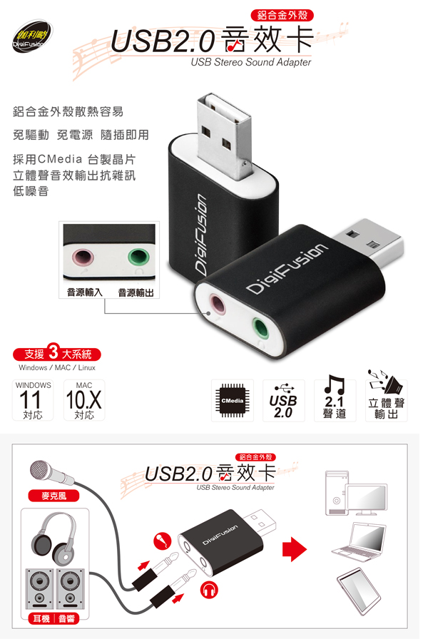 採用CMedia晶片。鋁合金外殼,散熱容易