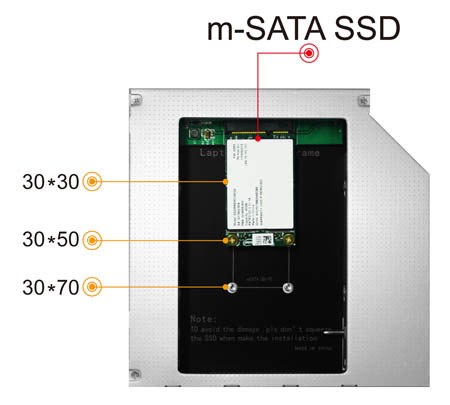 搭配硬碟轉接架,原光碟機位置可裝 m-SATA 固態硬碟