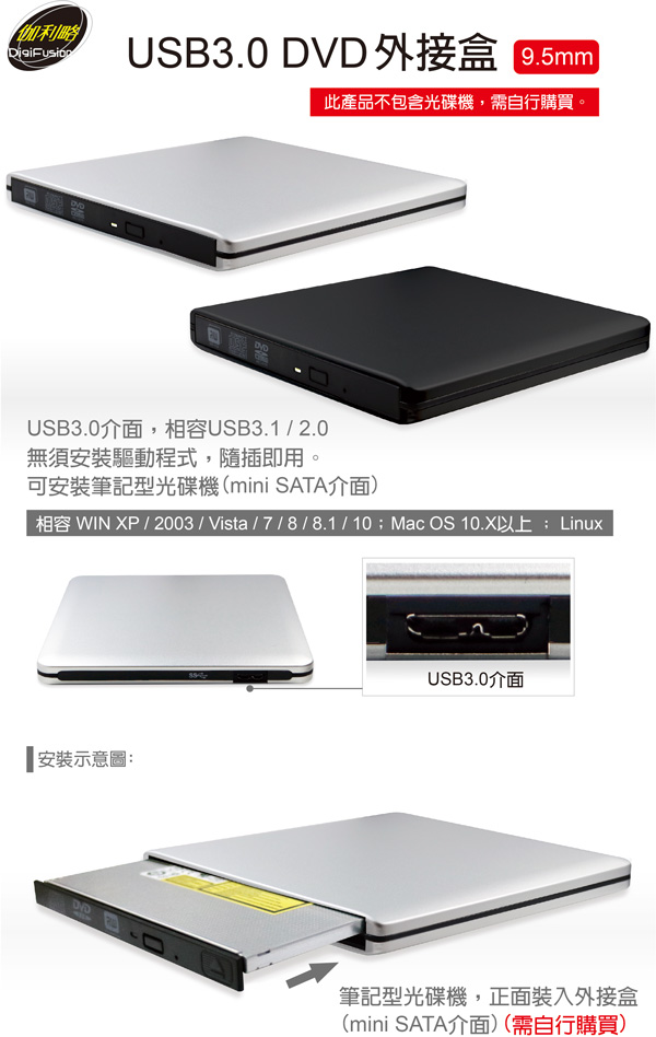 伽利略 USB3.0 DVD 外接盒 9.5mm